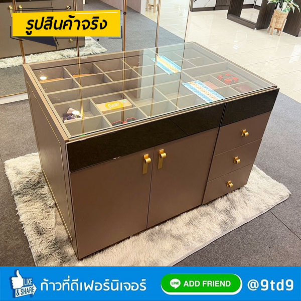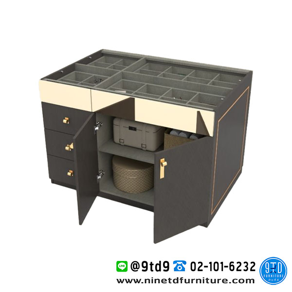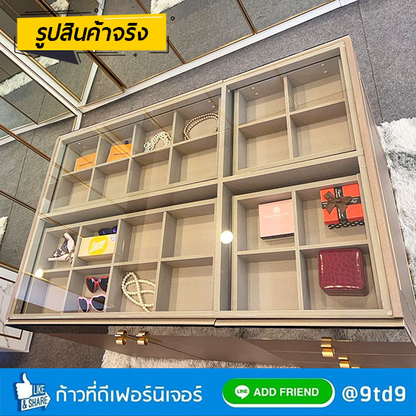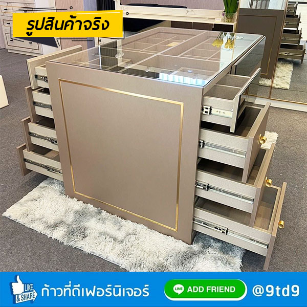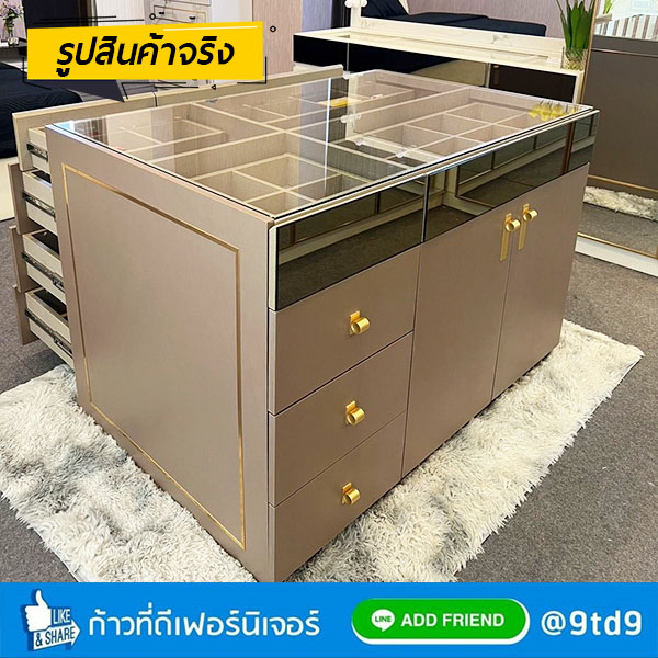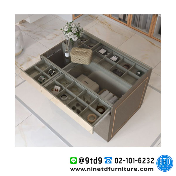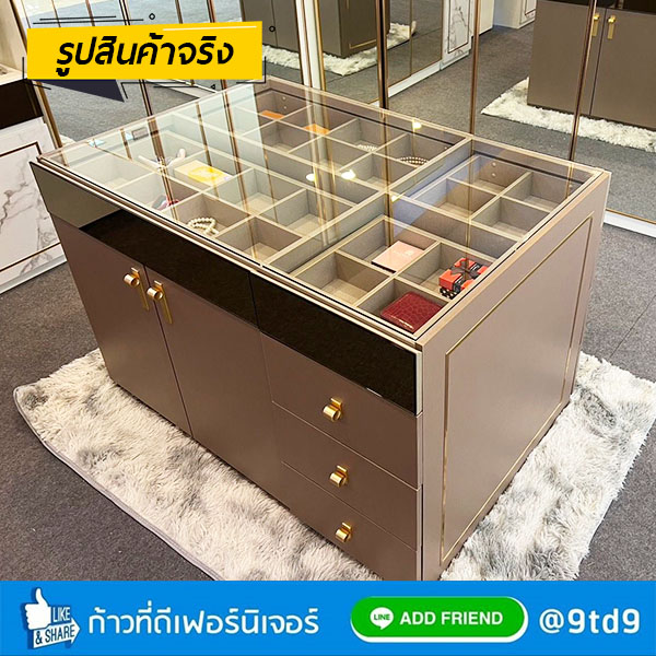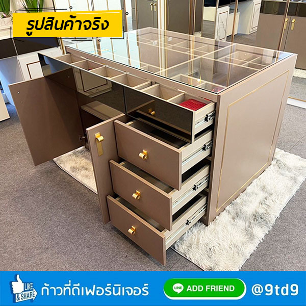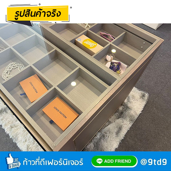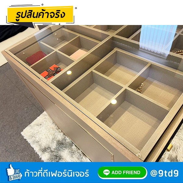 - ดีไซน์ด้วยหน้าท็อปกระจกใสโชว์การจัดเก็บเครื่องประดับต่าง ๆ