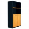 - แผ่นบนตู้ และแผ่นข้าง ทำด้วยไม้พาร์ทิเคิลบอร์ดหนา 19 mm. ปิดผิวด้วยฟรอยด์สีดำ ปิดขอบเรียบร้อยสวยงาม