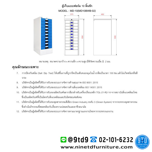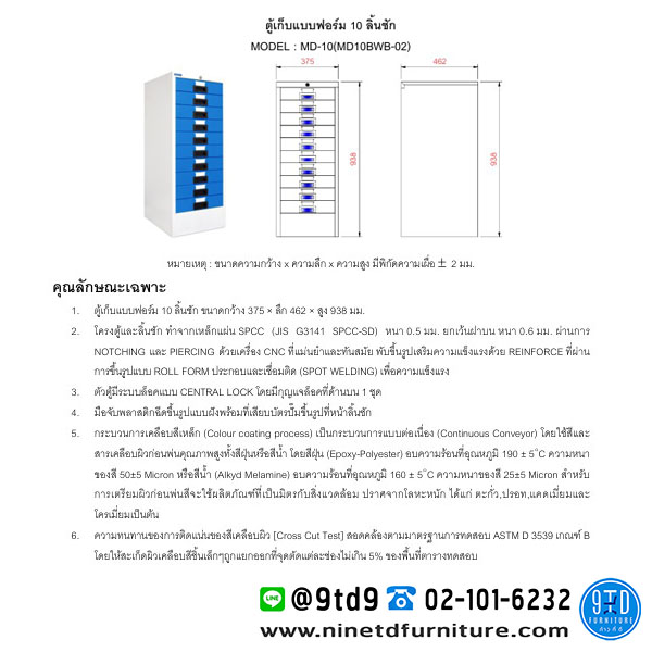 ตู้เก็บแบบฟอร์ม 10ลิ้นชัก รุ่น MD-10