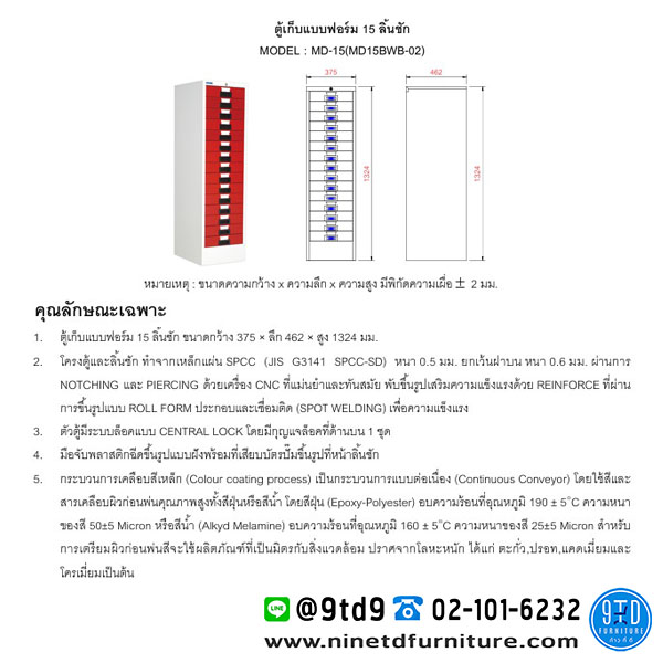 รุ่น MD-15 ขนาด 37.5W* 46.2D* 132.4H cm