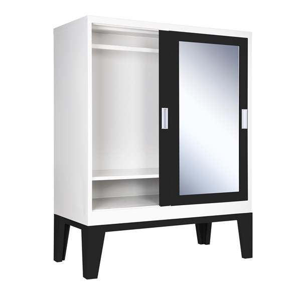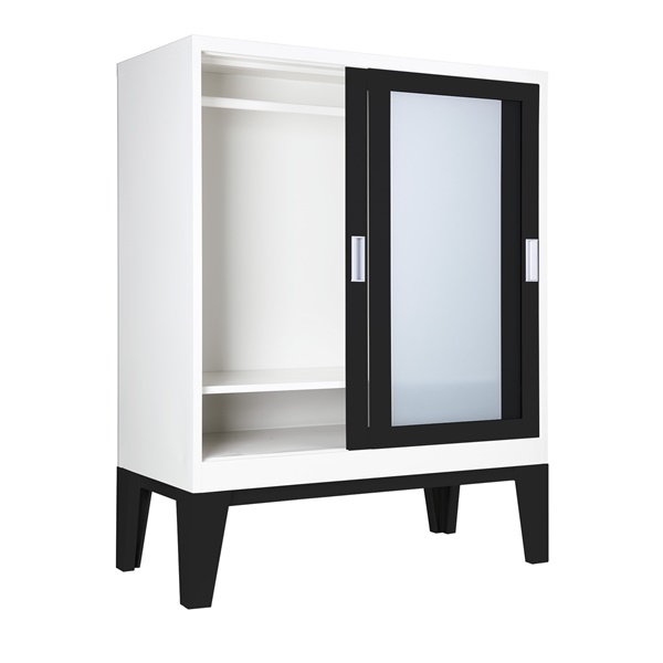 Medium sliding glass door wardrobe with 1 hanging rod and 1 shelf. (including base)