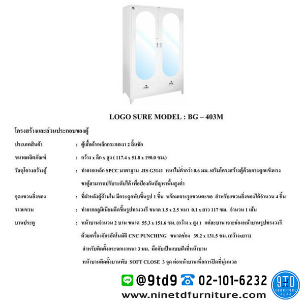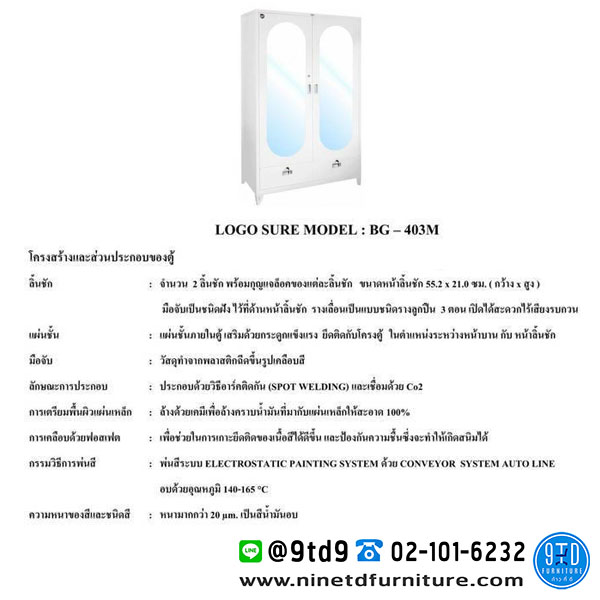 ตู้เสื้อผ้าเหล็กกระจกเงา รุ่น BG-402M