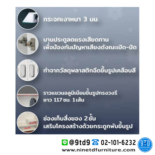 - มีจุดแขวนสิ่งของที่ฝาหลังด้านใน 4 ตำแหน่ง