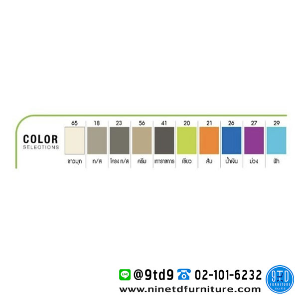 - มีสีให้เลือก : ขาวมุก, เทาสลับ, โครงเทาสลับ, ครีม, เทาราชการ, เขียว, ส้ม, น้ำเงิน, ม่วง, ฟ้า