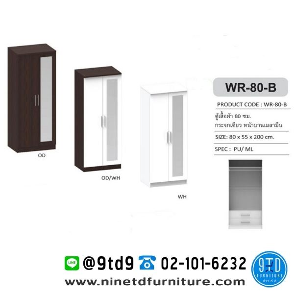 ตู้เสื้อผ้า 80 ซม. 2 บานเปิดกระจกเต็ม 1 บาน WR-80-B