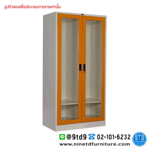 ตู้เสื้อผ้า 2 บานเปิดกระจกใสสูง(กั้นกลาง) 2 แผ่นชั้น 3 ฟุต รุ่น WD3FGLDC