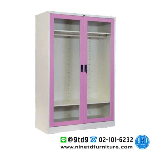 ตู้เสื้อผ้า 2 บานเปิดกระจกใสสูง ราวใต้ชั้น 2 แผ่นชั้น 4 ฟุต WD402FGL