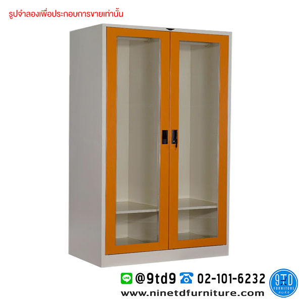 ตู้เสื้อผ้า 2 บานเปิดกระจกใสสูง(กั้นกลาง) 2 แผ่นชั้น 4 ฟุต WD4FGLDC