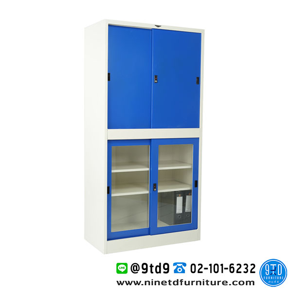 ตู้เอกสารบานเลื่อนบนทึบ ล่างกระจก 3 ฟุต SL3FH3