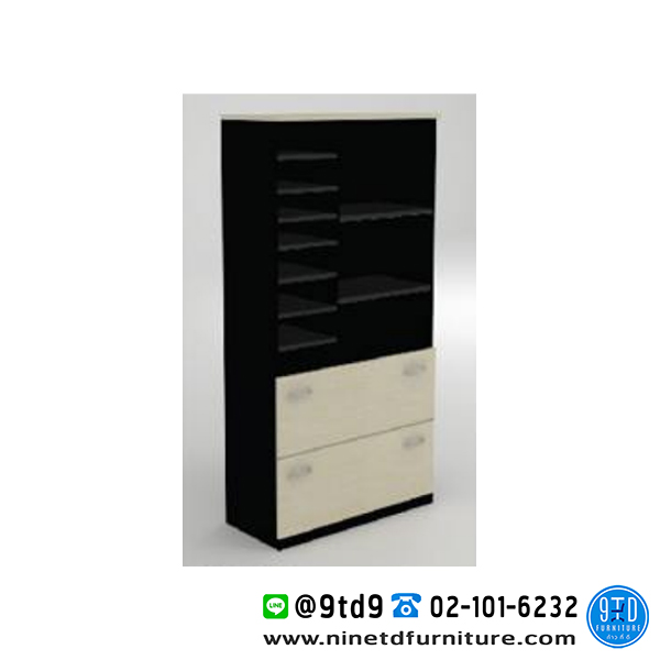 ตู้เอกสารสูงบนชั้นโล่ง+ถาดใส่เอกสาร ล่าง 2 ลิ้นชักแขวนแฟ้ม LINK รุ่น 18 TFLK