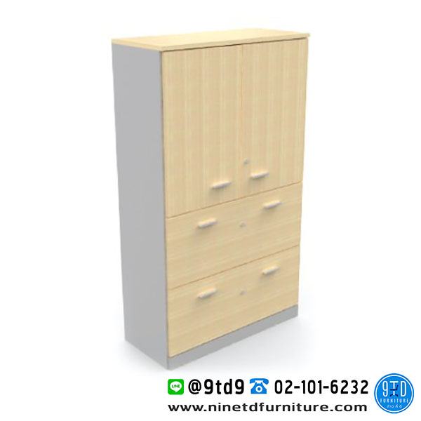 ตู้เอกสารสูงบนบานเปิดทึบ-ล่าง 2 ลิ้นชักแขวนแฟ้ม รุ่น MT15-OFP