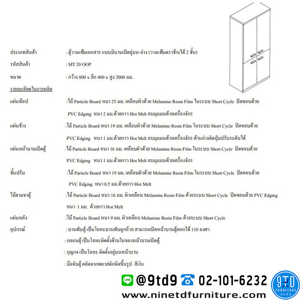 ตู้เอกสารสูงบน-ล่างบานเปิดทึบ รุ่น MT20-OOP