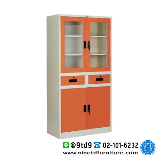 ตู้เอกสารสูง 4 บานเปิด มีลิ้นชัก บนกระจก-ล่างทึบ 3 ฟุต SC3F4P01
