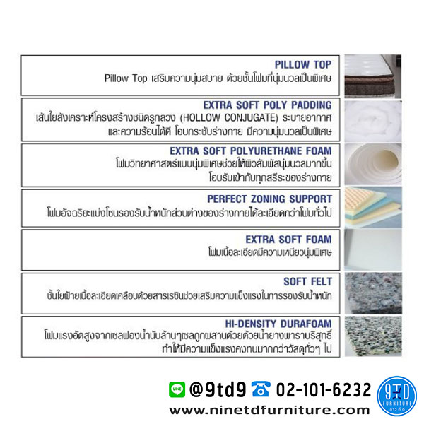 ป้องกันไรฝุ่น เชื้อรา และเชื้อแบคทีเรีย ไม่เป็นอันตรายต่อร่างกาย ไม่ก่อให้เกิดภูมิแพ้ - สามารถพลิกนอนได้ทั้ง 2 ฝั่ง