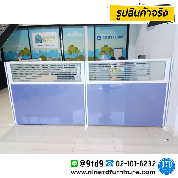 พาร์ติชั่น/ฉากกั้นออฟฟิศ แบบครึ่งกระจกขัดลาย/ฝ้า (ไม่มีกล่องร้อยสายไฟ) ขนาดสูง 150 CM