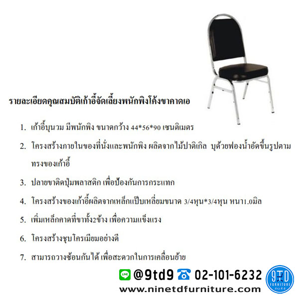 เก้าอี้จัดเลี้ยงพนักพิงทรงโค้ง เบาะพิงตัดตรง