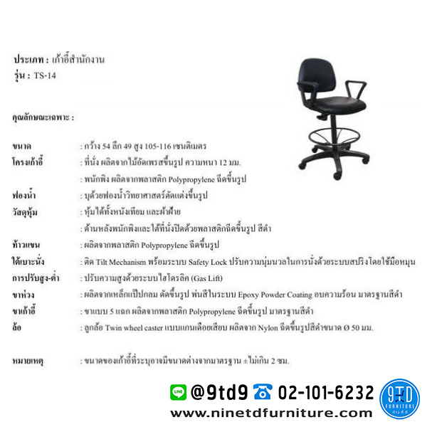 เก้าอี้บาร์สูงมีพนักพิง รุ่น TS-14