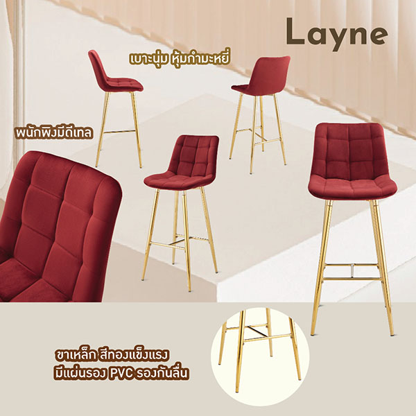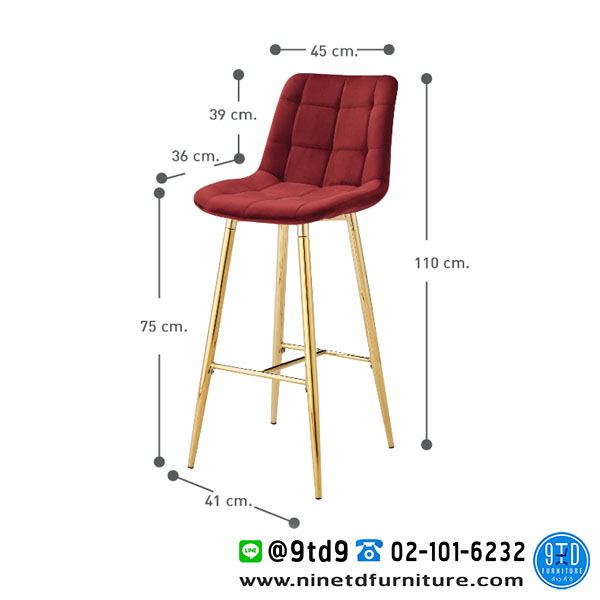 • เก้าอี้บาร์ เบาะหุ้มด้วยผ้ากำมะหยี่