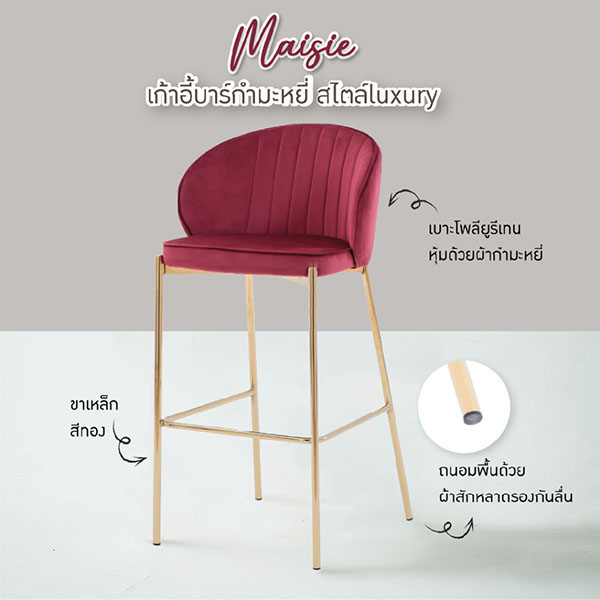 - เก้าอี้เบาะโพลียูรีเทน หุ้มด้วยผ้ากำมะหยี่