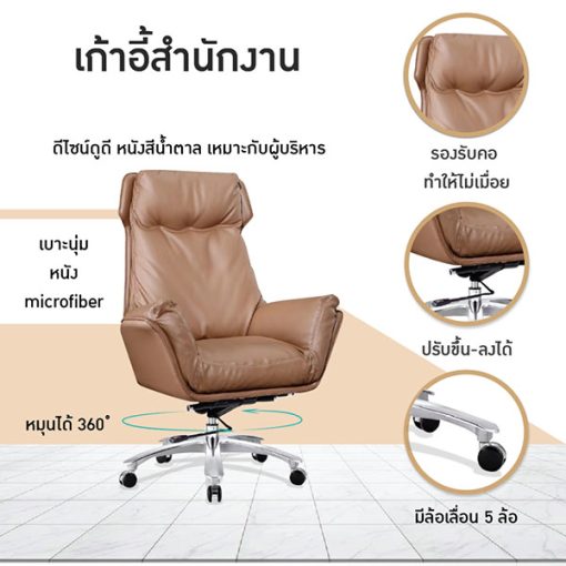 - เก้าอี้สำนักงาน มีล้อเลื่อนได้ สามารถปรับความสูงที่นั่งได้