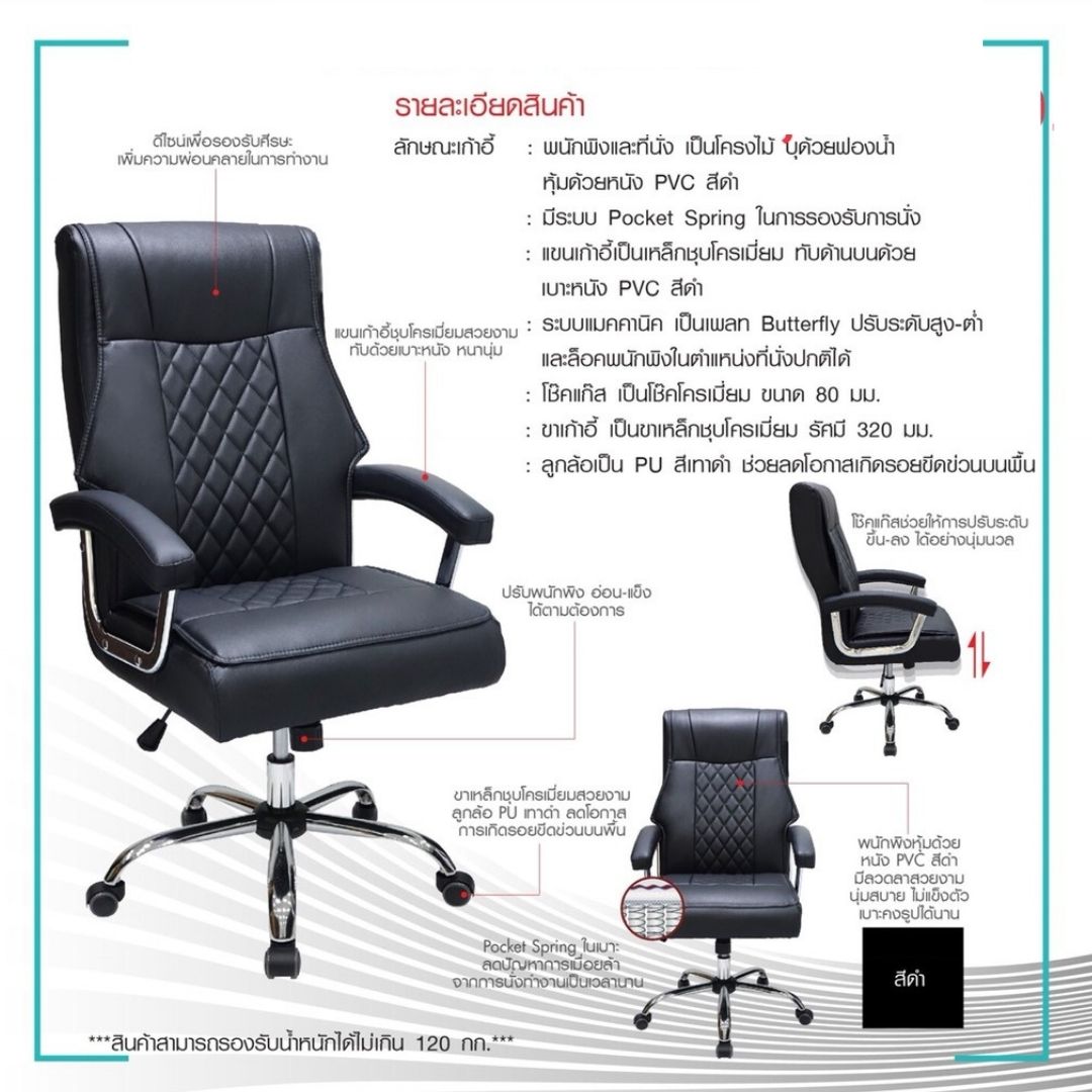 - แขนเหล็กชุบโครเมี่ยม หุ้มด้วยหนัง PVC