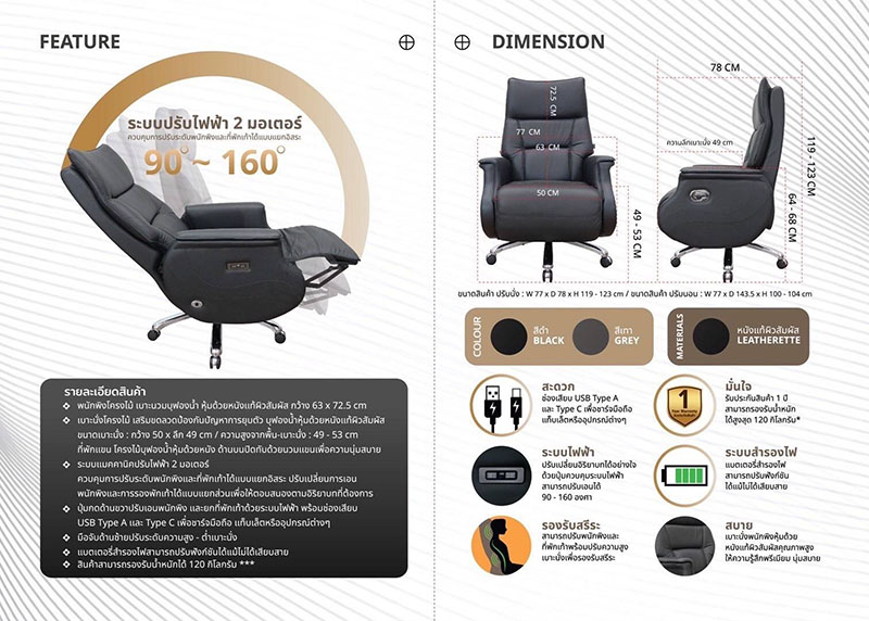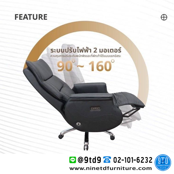 - ระบบแมคคานิคปรับไฟฟ้า 2 มอเตอร์ ควบคุมการปรับระดับพนักพิงและที่พักเท้าได้แบบแยกอิสระ ปรับเปลี่ยนการเอนพนักพิงและการรองพักเท้าได้แบบแยกส่วนเพื่อให้ตอบสนองตามอิริยาบทที่ต้องการ