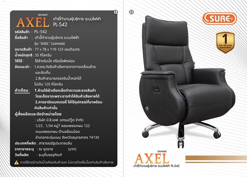เก้าอี้ผู้บริหาร ระบบไฟฟ้า “AXEL” (แอคเซล) PL-542