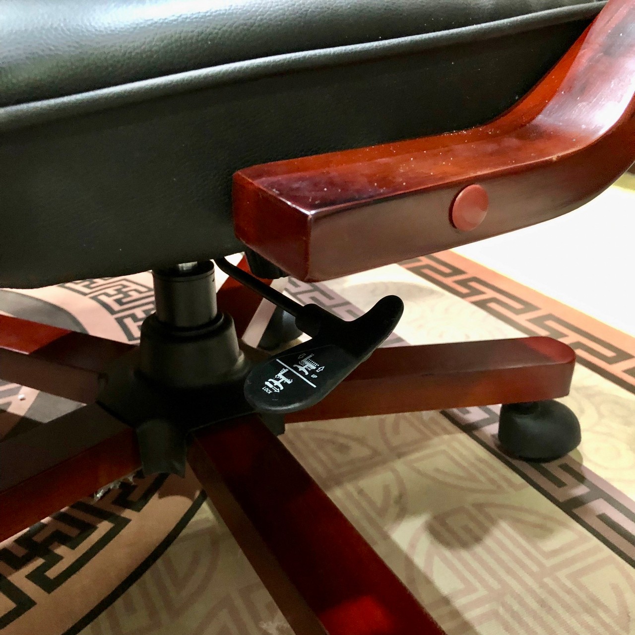 - ขาเก้าอี้แบบ 5 แฉก ทำจากไม้จริง ทำสีเคลือบด้วยโพลียูนิเทน ลูกล้อผลิตจากยูรีเทน (PU) และที่ขาไม้เสริมเหล็กภายใน เพื่อเพิ่มความแข็งแรง