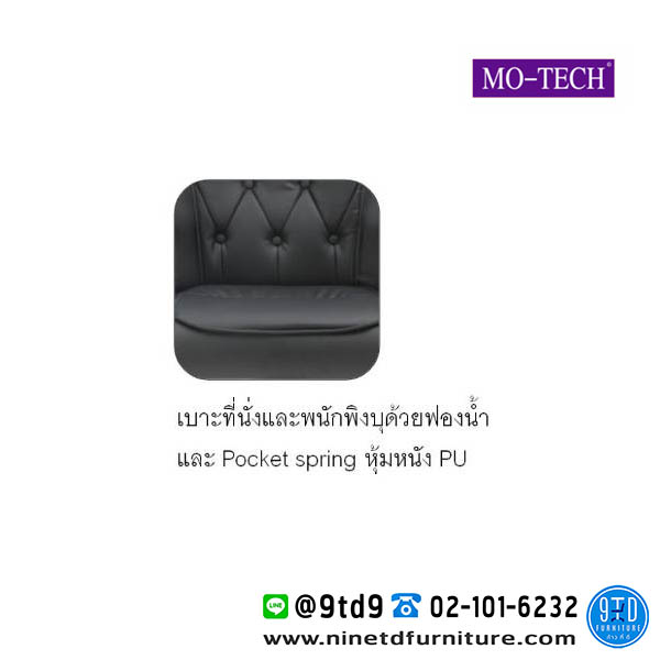 - เบาะที่นั่งและพนักพิงบุด้วยฟองน้ำ และ Pocket Spring หุ้มหนัง PU
