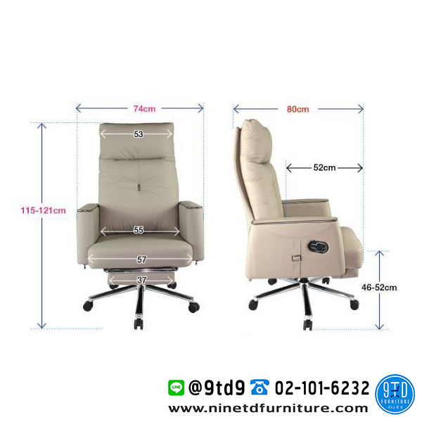 - ที่วางแขนท่อนแขนกว้าง พนักพิงสามารถปรับเอนนอนได้ถึง 120°