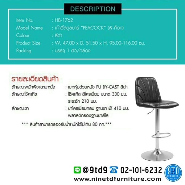 เก้าอี้สตูลบาร์ “PEACOCK” (พี-ค็อค) HB-1762