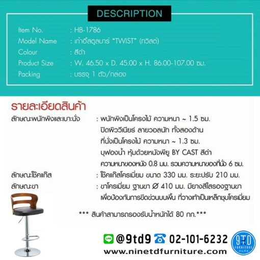 เก้าอี้สตูลบาร์ “TWIST” (ทวิสต์) HB-1786