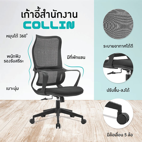 เก้าอี้สำนักงาน พนักพิงสูง รุ่น COLLIN