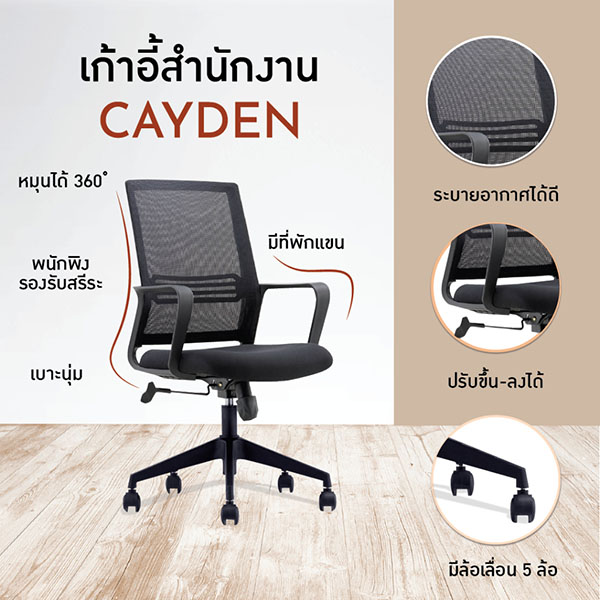 เก้าอี้สำนักงาน พนักพิงต่ำ รุ่น CAYDEN