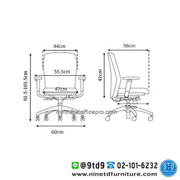 ขนาด : 55.5W x 56D x 92.5-103.5H CM.