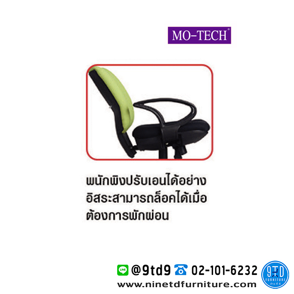 พนักพิงปรับเอนได้อย่างอิสระ สามารถล็อคได้เมื่อต้องการพักผ่อน