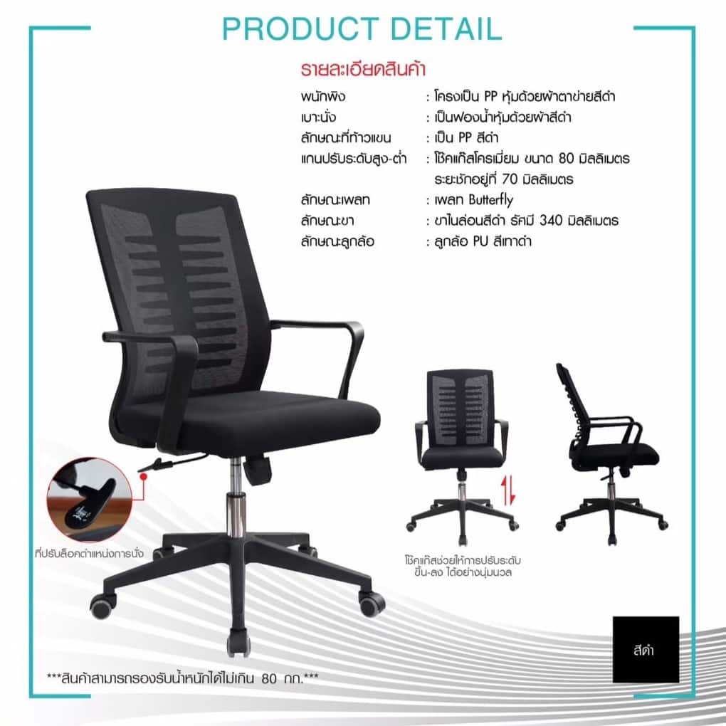 - พนักพิงหุ้มด้วยผ้าตาข่ายสีดำ