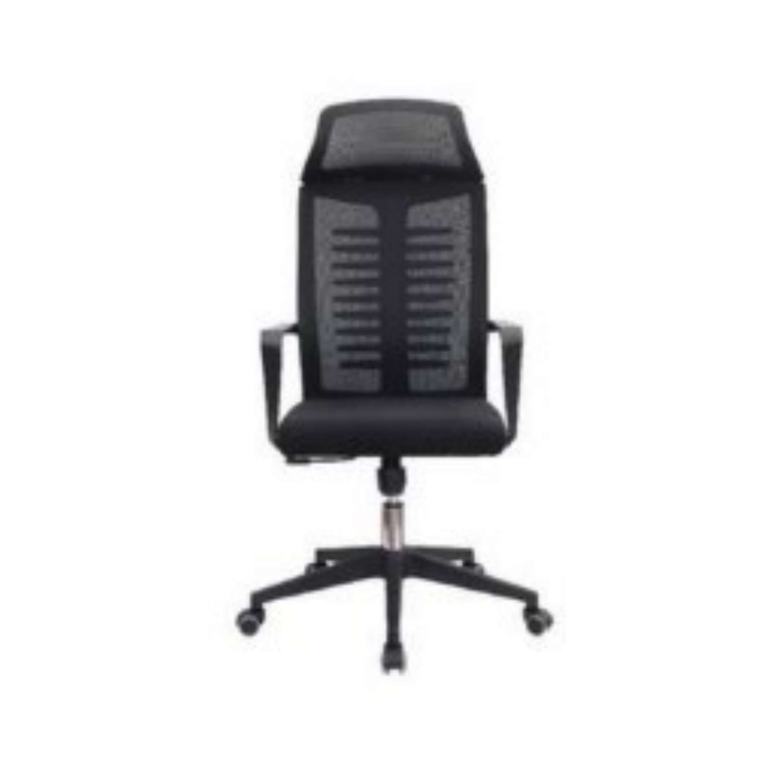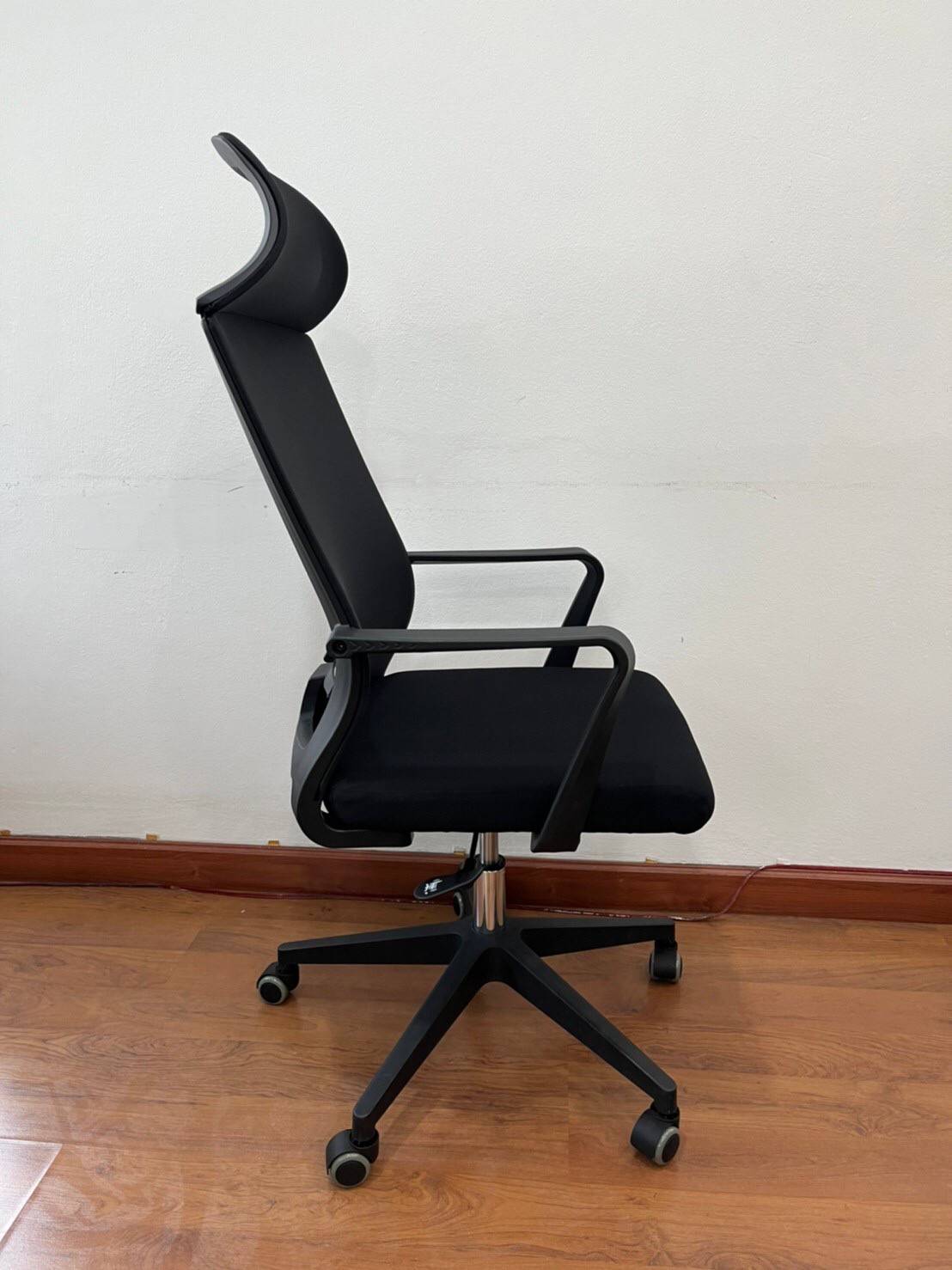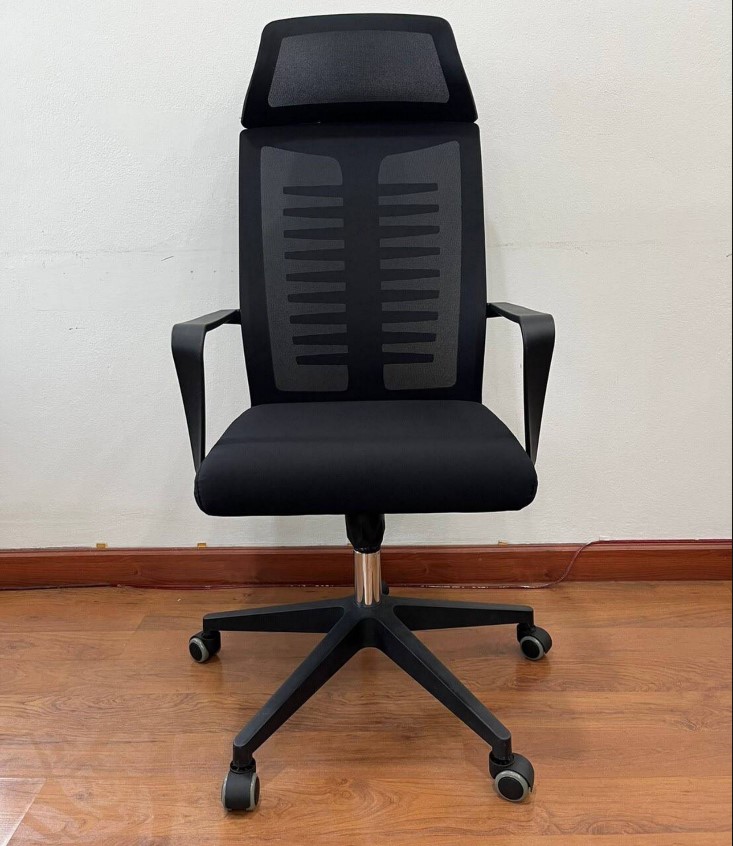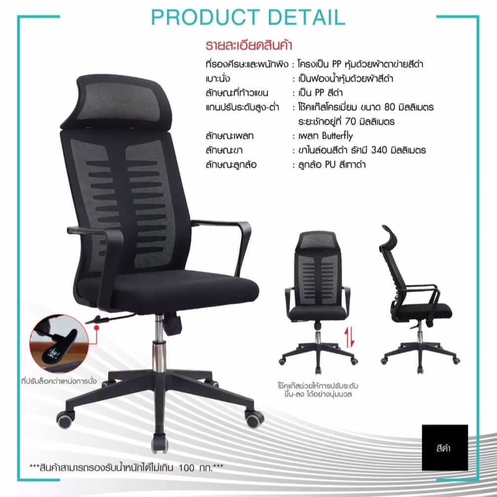 - พนักพิงและเบาะรองศีรษะหุ้มด้วยผ้าตาข่ายสีดำ