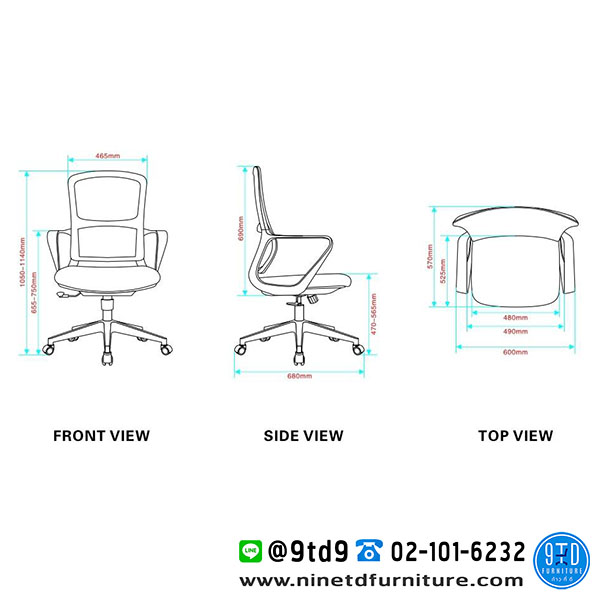 - เก้าอี้สำนักงาน มีล้อเลื่อนได้ สามารถปรับความสูงที่นั่งได้