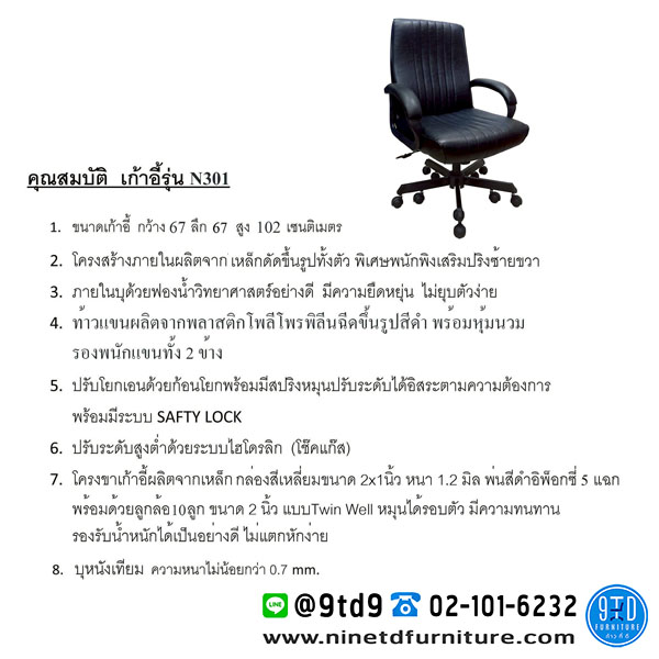 เก้าอี้สำนักงาน พนักพิงกลาง รุ่น N301 (10 ล้อ)