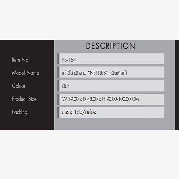โครงที่นั่งเป็นแผ่นไม้ บุด้วยฟองน้ำ หุ้มด้วยผ้าตาข่าย(Dobble Mesh) ช่วยเสริมความนุ่มสบายในการนั่งมากยิ่งขึ้น