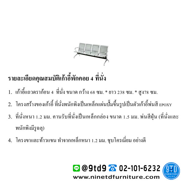 เก้าอี้แถวดราก้อน 4 ที่นั่ง