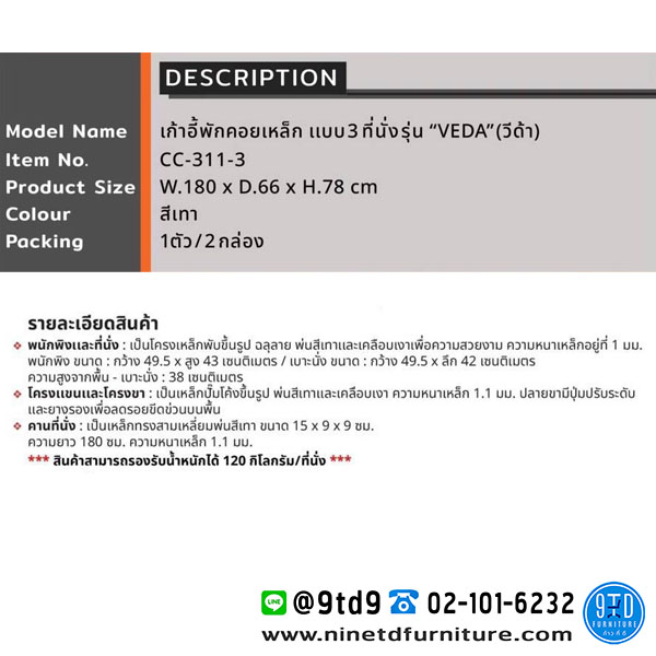 ***สินค้าสามารถรองรับน้ำหนักได้ 120 กิโลกรัม/ที่นั่ง***