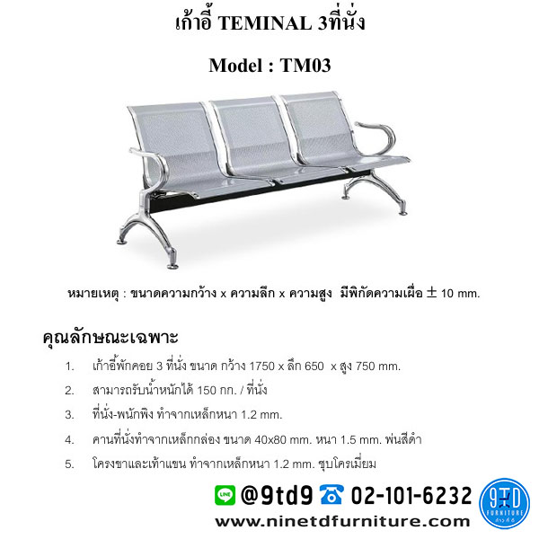 เก้าอี้แถว 3 ที่นั่ง รุ่น ICLBTM03