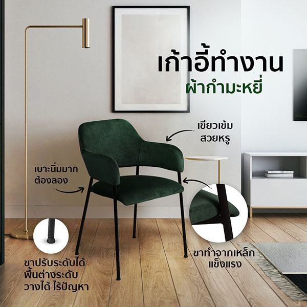 - เก้าอี้เบาะโพลียูรีเทน หุ้มด้วยผ้ากำมะหยี่
