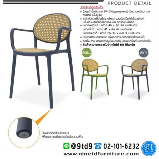 - วัสดุเก้าอี้ผลิตจาก PP (Polyproplene) มีความเหนียว และทนทาน แข็งแรง