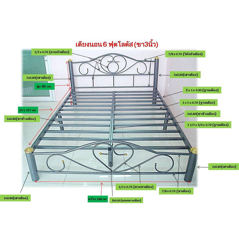 เตียงเหล็กโลตัส เสา 3 นิ้ว สีระเบิดเงิน 3.5-6 ฟุต B3105/150/180SL