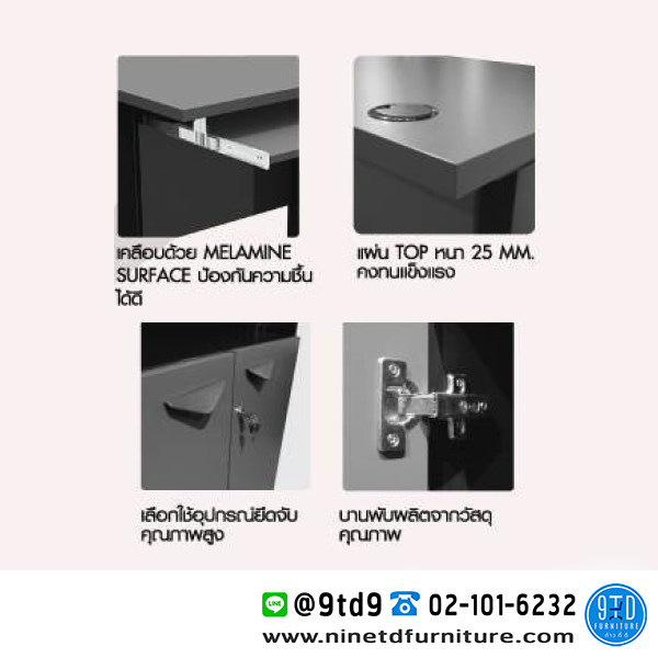 คุณสมบัติเด่นของเมลามีน ทนทานต่อรอยขีดข่วน ทนทานต่อความร้อนและสารเคมีป้องกันความชื้นได้ดี ทำความสะอาดได้ง่าย