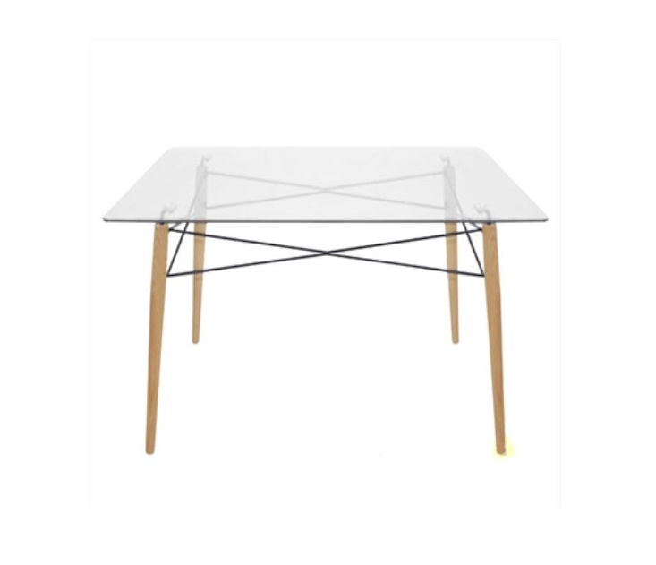 Color: หน้าโต๊ะกระจกใส ขาไม้สีบีช