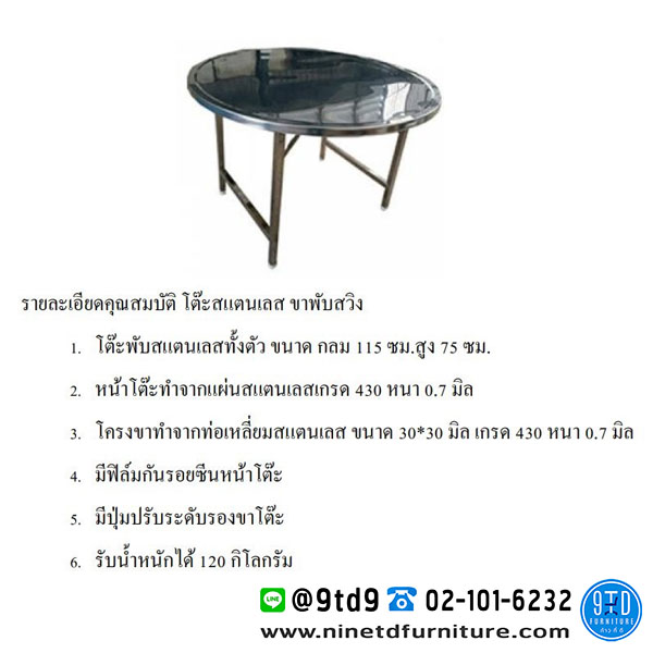 โต๊ะกลมสแตนเลสขาพับสวิง